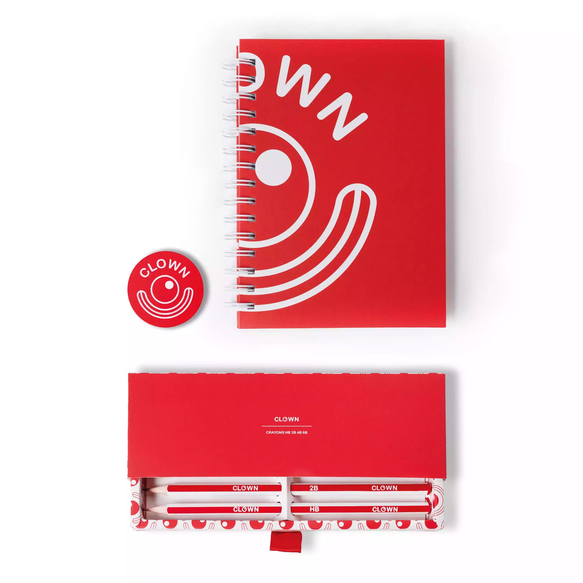 - 1 Box de 4 crayons ( HB, 2B, 4B, 6B ) clown en bois FSC.